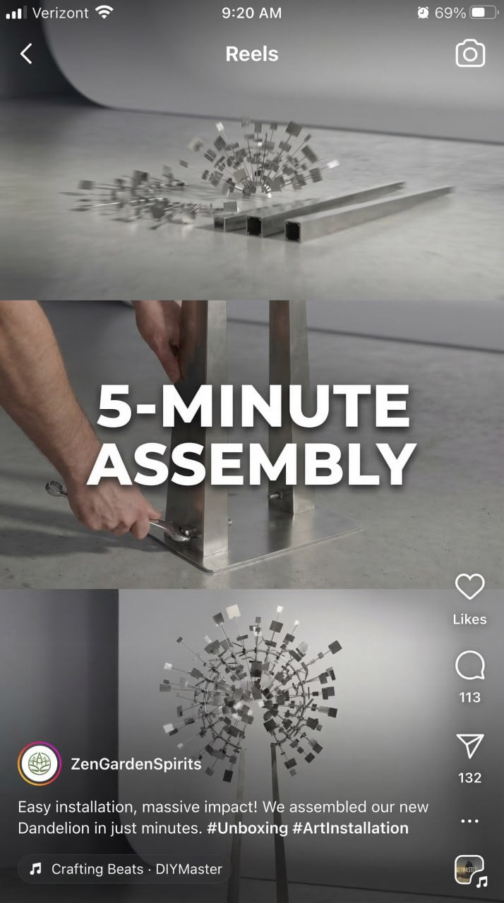 I added this Ichi kinetic spinner to my garden corner. The build quality is solid, and the stainless steel has a nice, clean finish. It rotates quietly when there’s a steady breeze and serves as a calm focal point for our backyard evenings. It arrived well-packaged and was simple to set up as described.